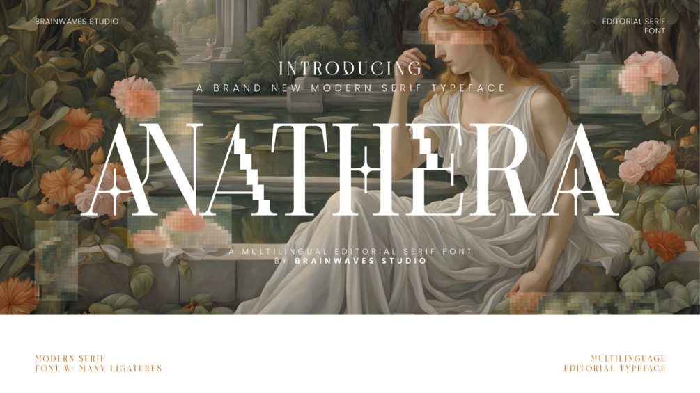Anatera Editorial Serif is an audacious typeface that redefines the boundaries of modern design. With its bold serif structure and minimalist flair, it commands attention and makes a statement. Ideal for those who push creative limits, this typeface is perfect for edgy posters and graphic design projects that demand a touch of sophistication without sacrificing attitude. Its sharp lines and distinctive details add an edge to any design, ensuring your work stands out in a sea of the ordinary. Embrace the power of Anatera Editorial Serif to make your visuals unapologetically compelling.