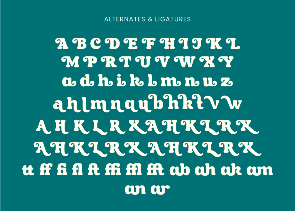 - Extensive Alternates & Ligatures: Playful alternates and stylish ligatures to add more personality and variety to your text.