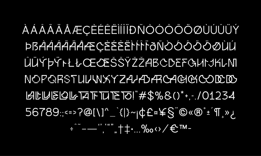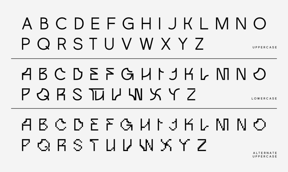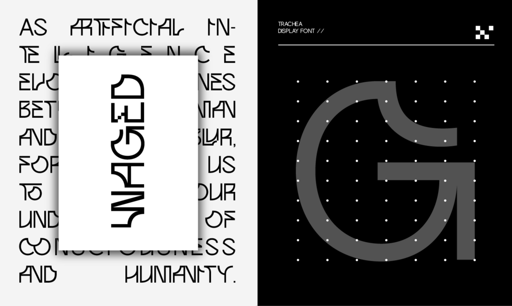 Trachea is a modern sans-serif font with a unique, creative edge. With its distinct shapes and alternate pixel-style options, Trachea offers endless possibilities for creating standout, visually engaging designs. Perfect for those seeking a versatile font to add a fresh, bold twist to their creative projects.